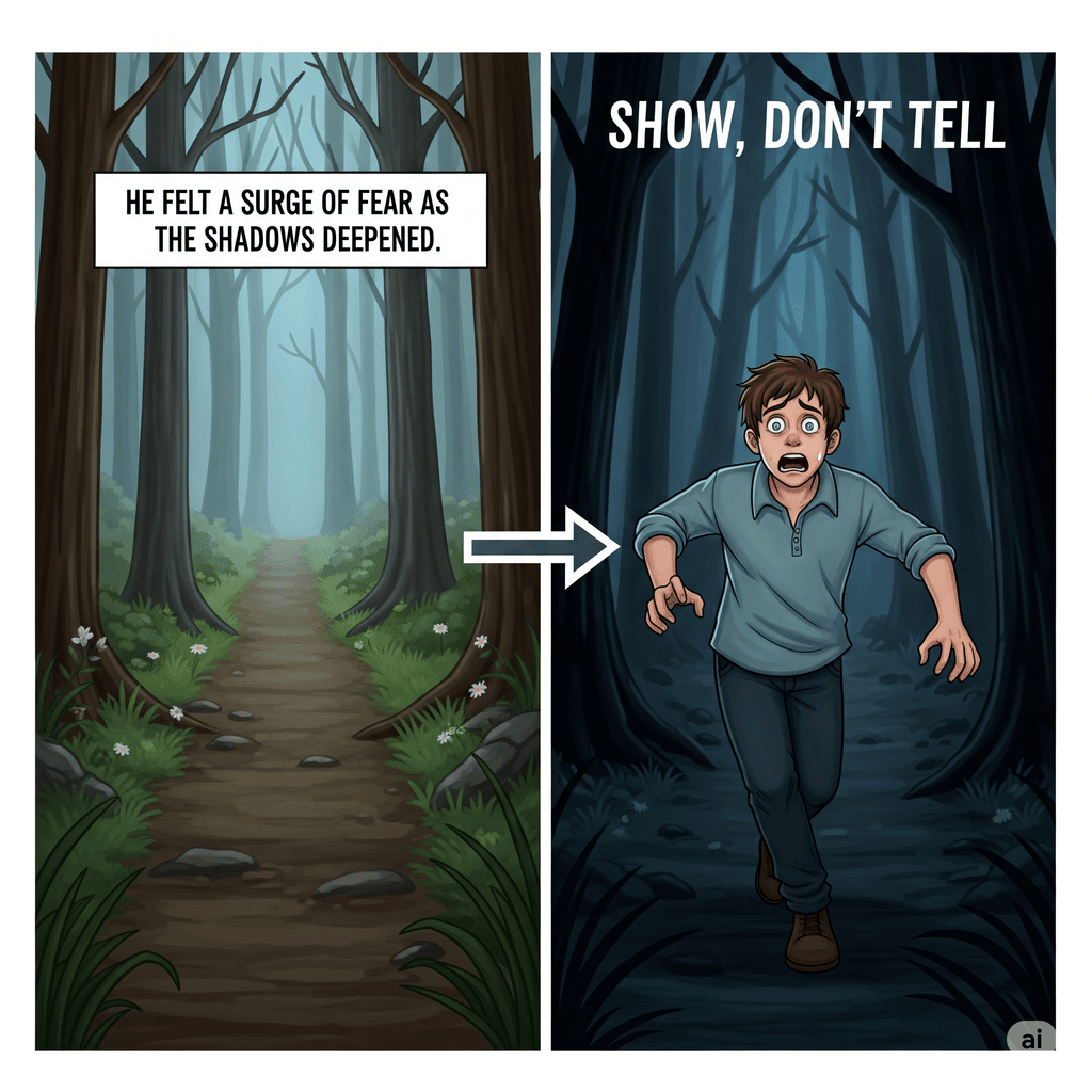 Writers "tell" readers what to think or feel, instead of using action and imagery to create a vivid scene.